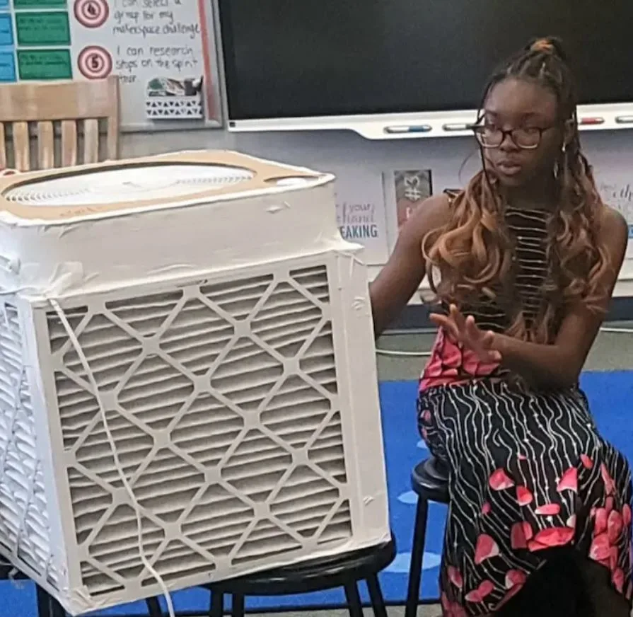 It all started in her own living room. Armed with curiosity, determination, and a pile of ordinary household items, a box fan, some furnace filters, cardboard, and duct tape, Eniola set to work. She tinkered, tested, and adjusted, driven by the idea that a low-cost solution could save countless children from illness. “I wanted to make sure kids could learn without worrying about getting sick,” she told her mother one evening, her eyes sparkling with resolve.