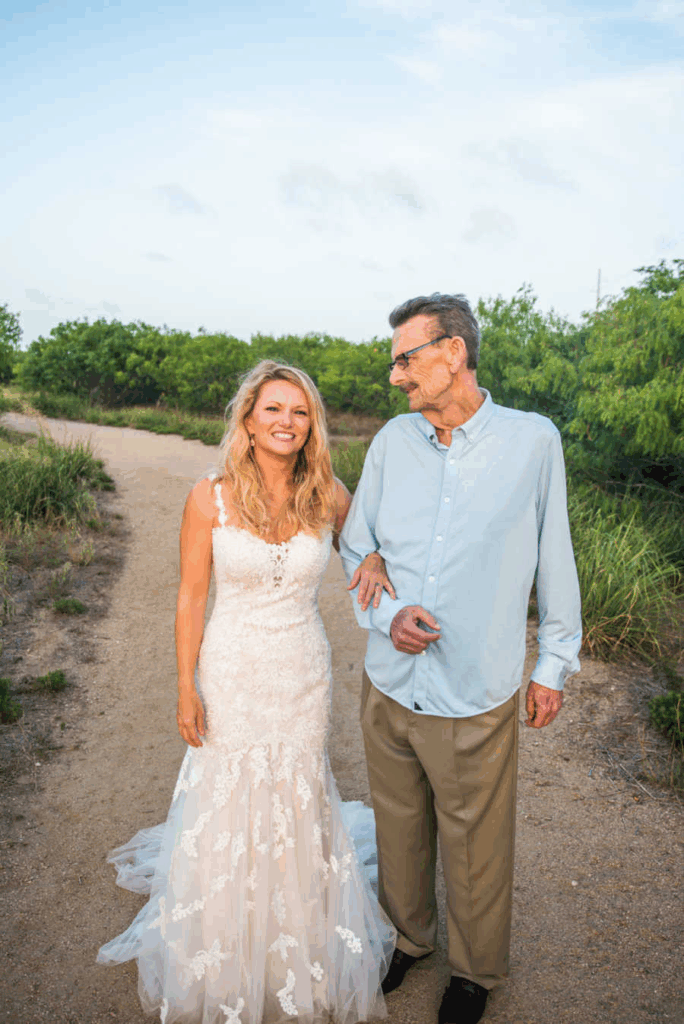 Some stories don’t begin at the altar. Some start in quiet hospital rooms, where the hum of machines becomes the background music to love and courage. For Michelle, her story as a bride started the moment her father told her he had cancer and wouldn’t live to see her wedding day. The kind of phone call shatters plans in a single breath. Her father lived in Corpus Christi, Texas, and she was in Washington State, where her wedding was just weeks away. He told her he wouldn’t be strong enough to travel. She hung up, took one long breath, and made a decision straight from the heart. She would fly to him, wearing her wedding dress, so he could see her as a bride, even if he couldn’t be there when she said, “I do.”