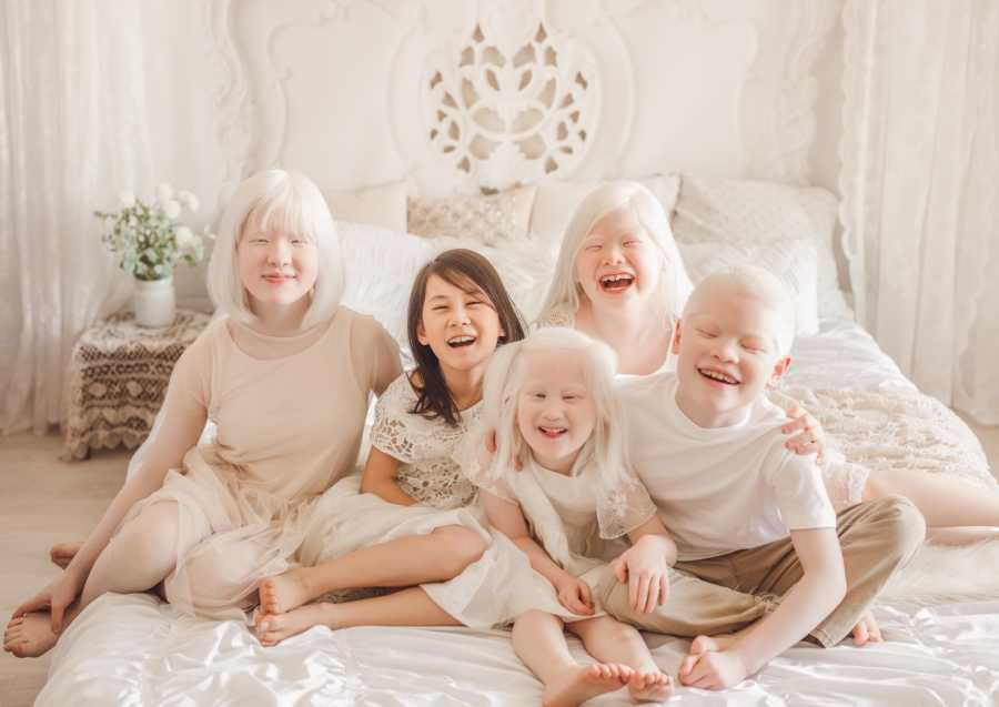 And then came Emily, the last piece of the puzzle, though by now they had learned never to declare themselves “done.” Emily was also born with albinism, completing a family of six adopted children, four of whom share that rare condition.