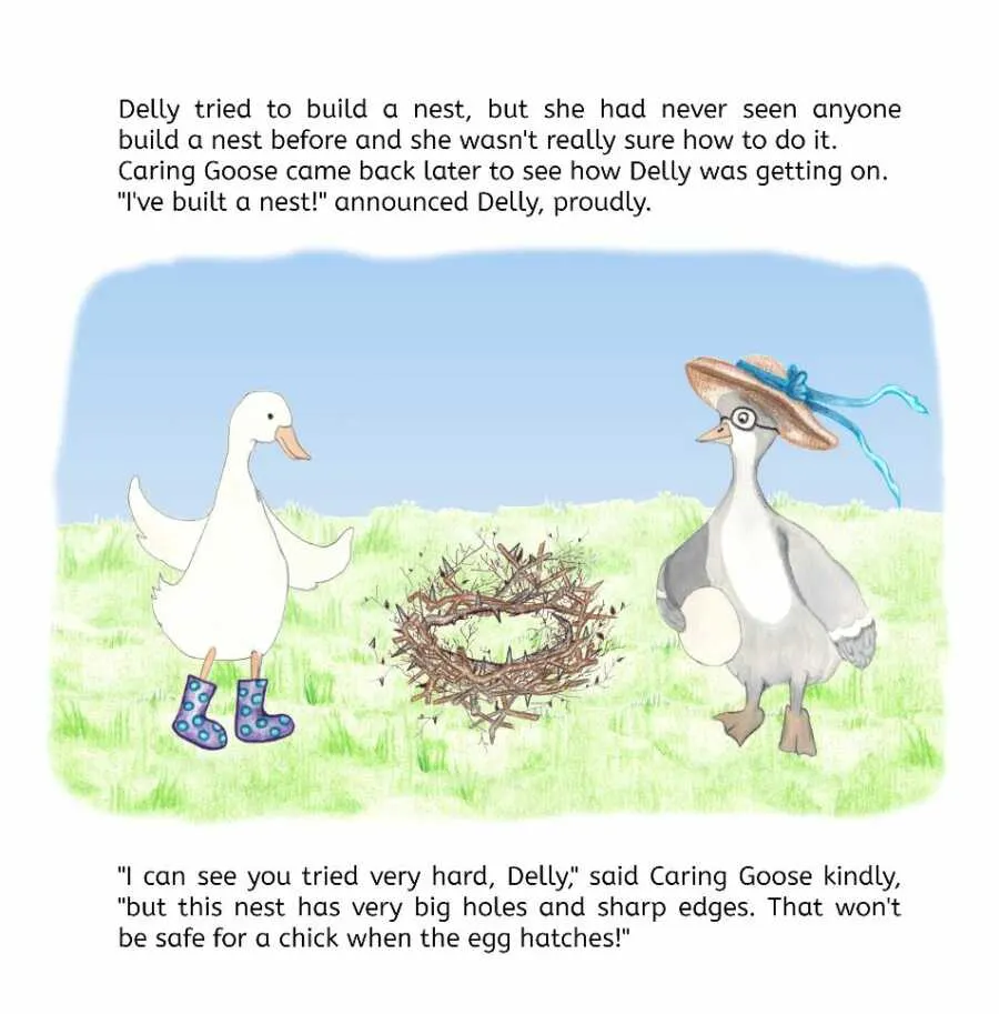 In “Delly Duck,” Holly uses symbols so each family can interpret the story in a way that fits their truth. Delly is easily distracted; she chases butterflies and forgets her egg and duckling. That may be read as addiction or as memory and concentration issues linked to trauma, health, or learning needs. Holly wrote Delly with tenderness: a parent who tries to build a nest, accepts help from a social worker, and still can’t make life safe enough.