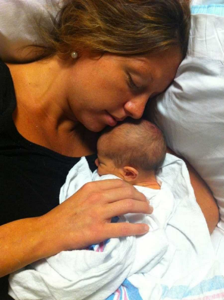 The high-risk OB team was right there. The lights were turned down low in the delivery room. Voices were muffled, but two words were clear: preeclampsia and HELLP syndrome. With the onset of labor, her water broke, but it was full of blood. C-sections were ruled out, and it was likely the reason she was able to stay alive. Her platelets were critically low, but the epidural was inserted for absolutely excruciating pain. Throughout, she knew that God was protecting her and that precious baby.