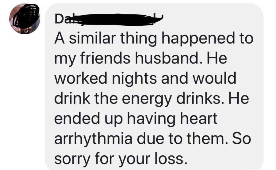 Later, Cassondra learned his organs were supposed to be donated to help others, but because of a mistake by the nurse, that call was never made. For weeks, she felt heartbroken, thinking that his death had no meaning. However, when their story was published online, hundreds of messages poured across the United States and worldwide. People thanked her for sharing. Many said they stopped drinking energy drinks after reading about her husband. One man admitted his wife had begged him for years to quit, but her story finally convinced him. Others realized that energy drinks caused the heart palpitations and chest pains they’d been ignoring. Doctors and teachers reached Cassondra, who wanted to use her story to educate their patients and students.