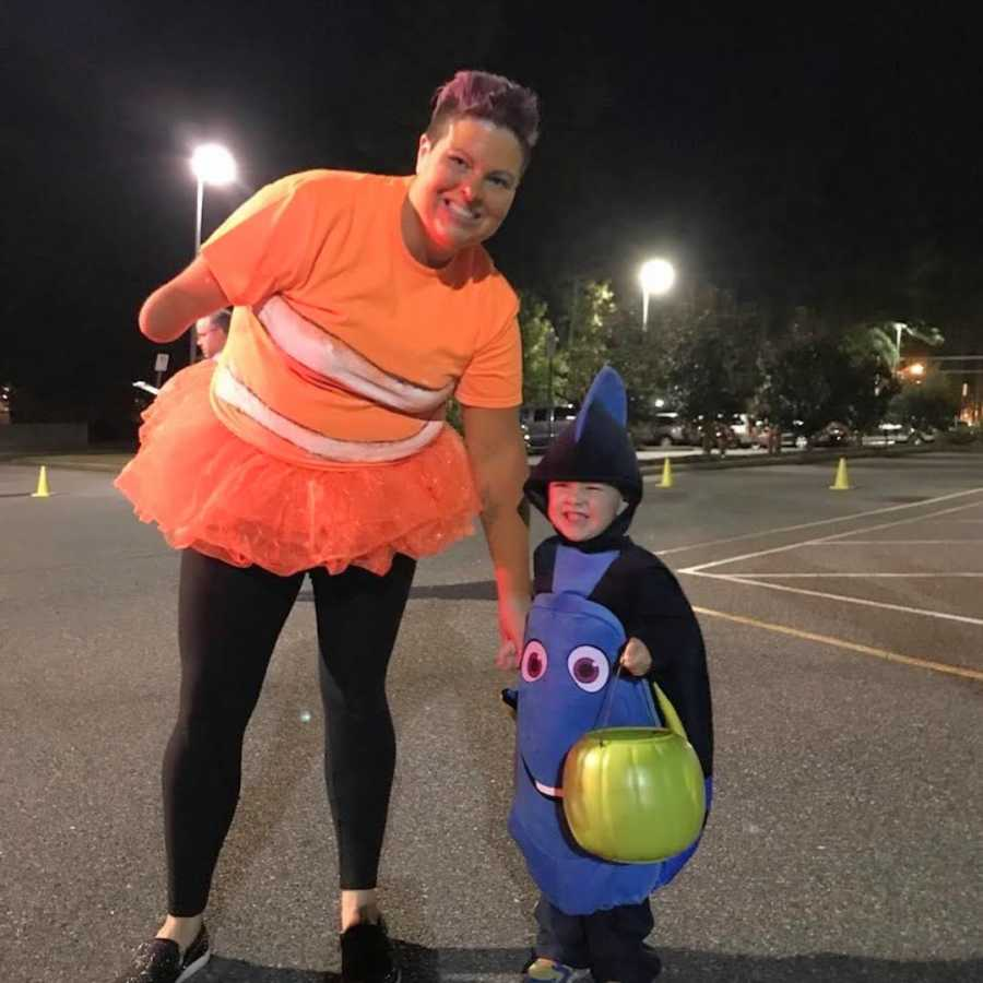 At home, her arm was in everyday life. Her dad had a prankster’s heart. At the mall, he would tuck her prosthetic hand into his back pocket so it stuck out and dared anyone to comment. Halloween became a playground for gallows humor. She would tell people her costume was real and then wave her little arm. Mostly, people laughed and filled her bag with extra candy.