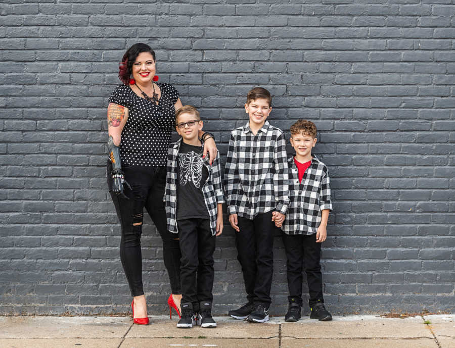 The moment that changed everything came when her first child was three. A classmate asked what happened to her arm. Before she could speak, her son stepped in front of her like a tiny guard and said, She was born like that. His voice held pride and love. Her deepest fear fell away. He did not see shame. He saw his mom. From then on, she stopped wondering whether she was enough. She already was. She had two more boys. Their house is filled with noise, everyday chaos, and a few unique phrases. Bring me my arm. Hold my nub. They watched strangers stare and heard whispers, but they also watched their mother turn those moments into lessons. She became a PTA president and a speaker on disability and inclusion. She told her boys to let people do things their way, to help only when asked, to respect differences.