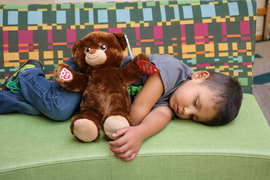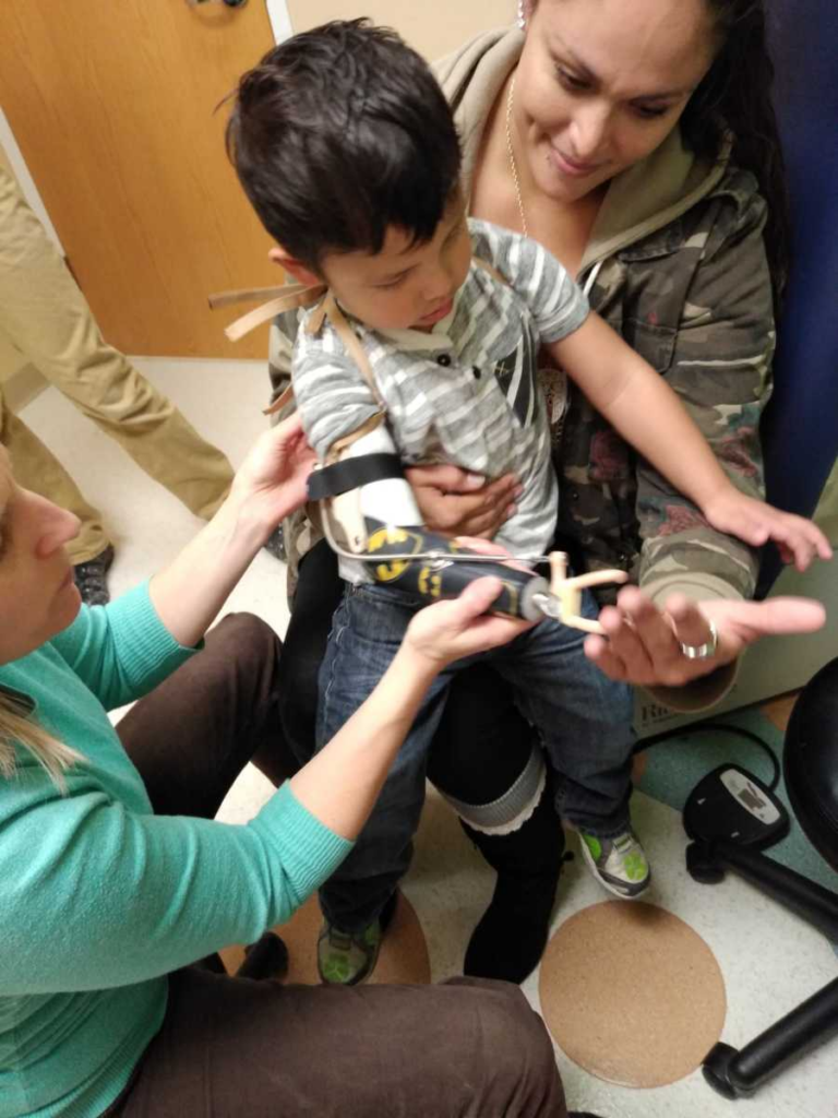 During one of the hospital visits, Baby Ty received a special treat. He was given a teddy bear donated by Southwest Airlines and Build-A-Bear in celebration of National Teddy Bear Day. The hospital distributed them during stressful visits to comfort the kids. Baby Ty took to the teddy bear immediately. Baby Ty adapted to his prosthetic arm surprisingly quickly. Within a few attempts, he began to grasp objects using the prosthetic. But as he grows, there will come a time when modifications are made, and maybe he can advance to a more sophisticated one. Throughout this experience, Baby Ty never forgets his teddy bear. At night, he holds it in his bed, tucks it in so it won’t get too cold, holds it tight, and kisses it goodnight.