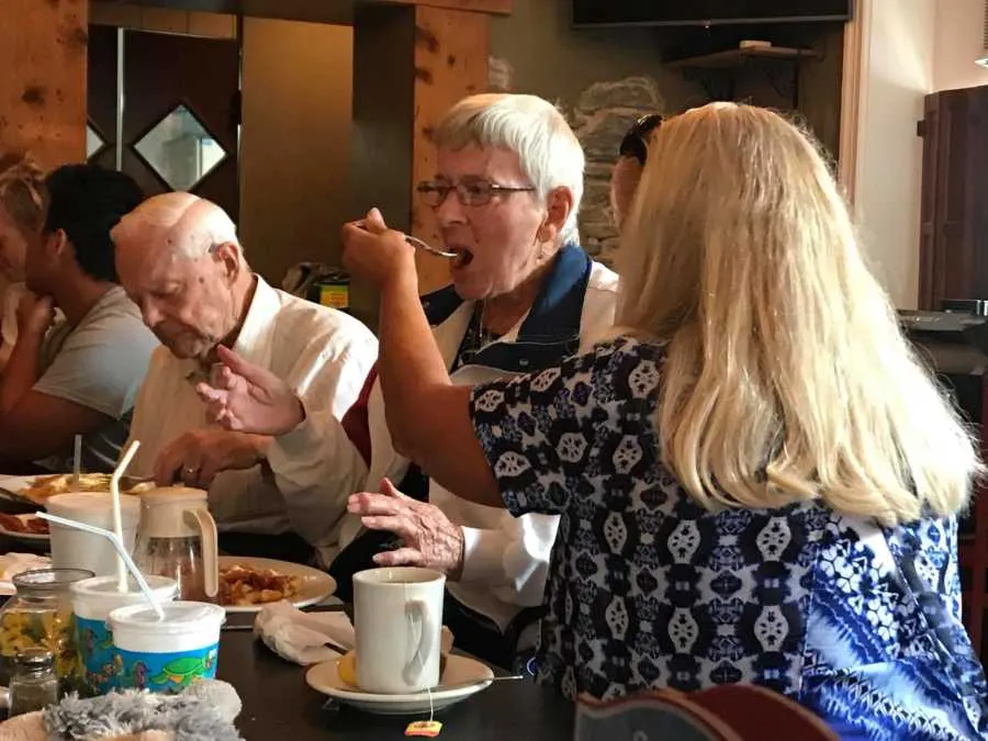 Before they left home, the family gathered for one last Sunday breakfast. The table was crowded with chatter and clinking silverware, a familiar chaos. Her aging parents sat side by side, patient but weary. The restaurant forgot their order, so everyone else ate first. Her mother pushed her food around the plate, fingers tracing syrup through powdered sugar. Someone placed a fork in her hand, but it slipped back onto the table. Becky’s sister tried coaxing her to eat, and when that failed, Becky leaned in with the kind of humor that’s half love and half desperation. “Come on, Mom,” she said softly, “just one bite for me.” It was the sort of moment that quietly breaks you—watching a parent fade in small ways while watching a child begin her own life. Becky saw the reflection of both directions at once — one generation needing her to stay, the other asking her to let go.