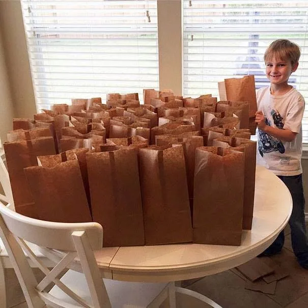 Back home, the kitchen became our little workshop. We wrapped sandwiches, packed apples, and added bottles of water. He arranged each bag with care, wanting to make sure every detail was just right. “I want them to feel like someone cares,” he said softly.