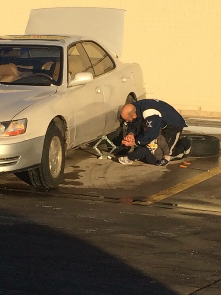 Dad Teaches Son Tire Change, Shares Heartfelt “Great Job, Buddy” Moment of Bonding