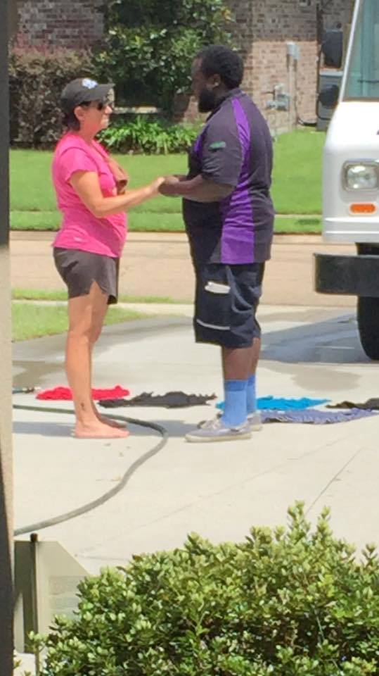 And there they stood, on our front porch, between a cardboard package and a long gravel driveway, two strangers bowing their heads as the world kept spinning around them. Cars drove by, dogs barked in the distance, leaves shifted in the breeze, yet in that little pocket of time, everything felt still.