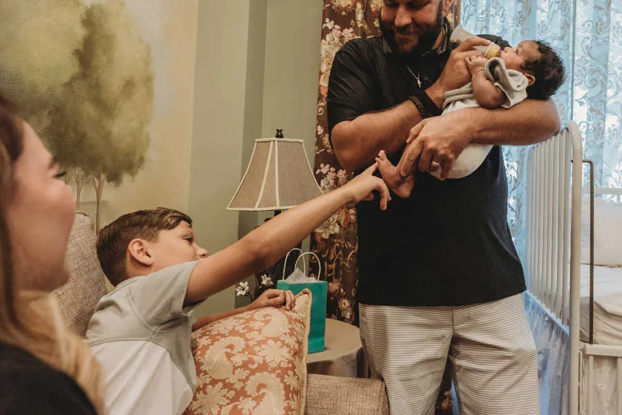 When placement day arrived, they met the transitional family who had cared for the baby while legal paperwork moved through the system. And then, the door opened. The birth mom walked in holding her son. Their son. The moment was both beautiful and unbearable. They held him, fed him, kissed his cheeks. Their nine-year-old, wide-eyed, asked question after question. When he realized the birth mom would be handing his baby brother to them, his voice wavered. “Won’t she be sad?” he asked quietly.