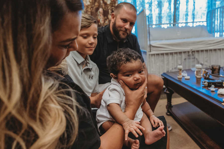 When placement day arrived, they met the transitional family who had cared for the baby while legal paperwork moved through the system. And then, the door opened. The birth mom walked in holding her son. Their son. The moment was both beautiful and unbearable. They held him, fed him, kissed his cheeks. Their nine-year-old, wide-eyed, asked question after question. When he realized the birth mom would be handing his baby brother to them, his voice wavered. “Won’t she be sad?” he asked quietly.