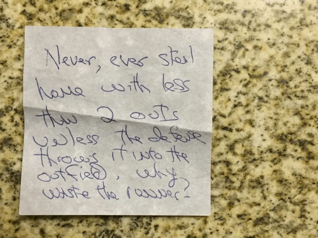 He used paper from torn notebooks and used each piece of paper to the best of its ability. On some days, the notes included famous quotations that gave valuable life lessons, but on others, they were reminders of driving safely or of how much Dad loved Erin. Not only this, but when Dsd had something worthwhile to teach his daughter, he noted it down as his daughter’s football coach.