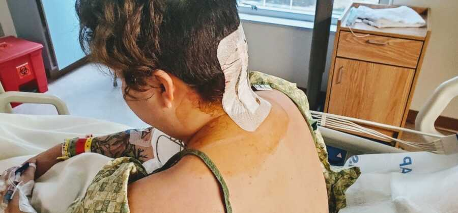 On Halloween 2010, after hours of walking, her feet swelled so badly her boyfriend had to carry her home. By morning her legs were purple and she could not stand. In the emergency room a tick bite was found and doctors suspected Lyme disease, warning arthritis might come later. The swelling eased and she walked out, promising herself she would keep moving. She married, had two high risk pregnancies, and two boys. One was born at 35 weeks; the other lost oxygen at birth and has cerebral palsy. An obstetrician told her Lyme would have shown on tests and blamed her foot pain on arthritis and plantar fasciitis. She became a single mother, worked hard, and kept going.