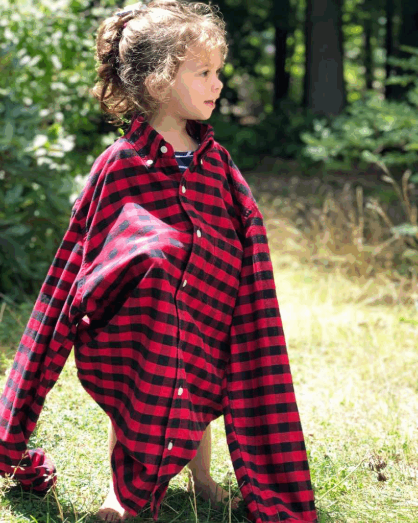 Josh owned a collection of Oxford shirts every dad has worn for years. They may be a little faded, but they are still perfectly good. To Carli, they looked like an opportunity. She started turning them into dresses for Amelia, her daughter and muse. Amelia was part Disney princess, part mountain climber. One minute she wanted to twirl in tulle, the next she asked to hike or fish with her dad. Carli loved the mix of grit and glitter, and sewing clothes for Amelia became her way of nurturing that girly side. One day, while flipping through the hangers in Josh’s closet, Carli spotted the shirt.