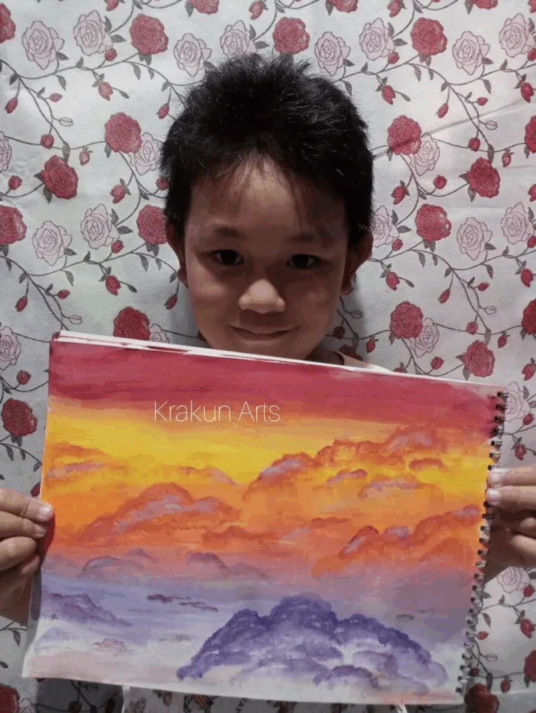It started with a fingerprint project he called “glow sticks.” She looked again and saw color choices that made sense in his own way. She bought watercolors, brushes, and canvas, signed him up for classes even though money was tight, and gladly accepted gifts of supplies from family and a best friend. He picked an artist name, Krakun, from a family nickname. He painted from photos and from scenes in his head. He loved abstract, tried landscapes, and practiced realism. He finished more than twenty paper pieces and a dozen canvases. His first sale, “Chaos,” inspired by a scene from Avengers: Endgame, felt like a door swinging open. He sold more in charity shows and began giving parts of the proceeds to causes that moved him. When asked to help, he said, “Okay, let’s help them,” as if generosity were the most natural thing in the world.