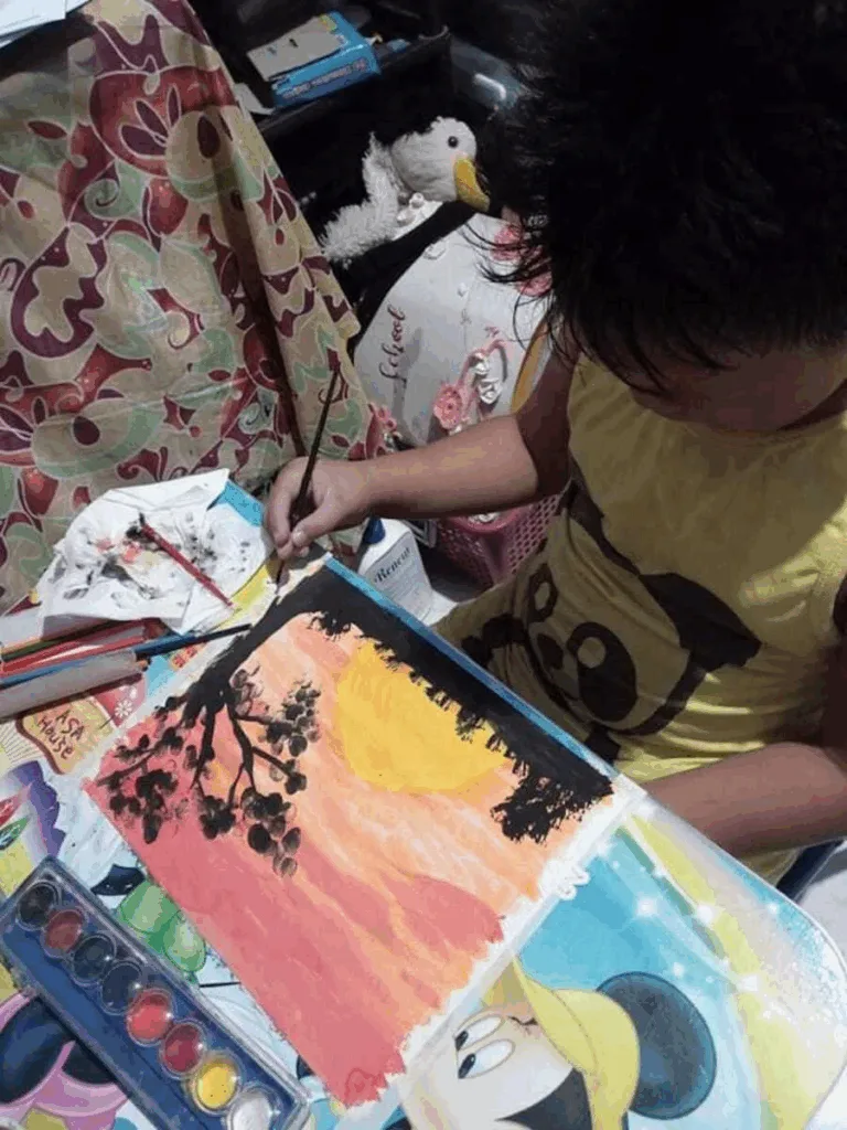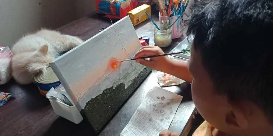 But time has shown me there is another side to his story. By 2022, he had become a second grader and discovered a love for painting. His first school project, what looked like glow sticks to him, sparked something in me. I realized what his psychiatrist had said: help him find his passion. We bought paints, canvases, and brushes, even when money was tight. Family and friends chipped in, too. He began painting constantly, pouring his focus into his art.