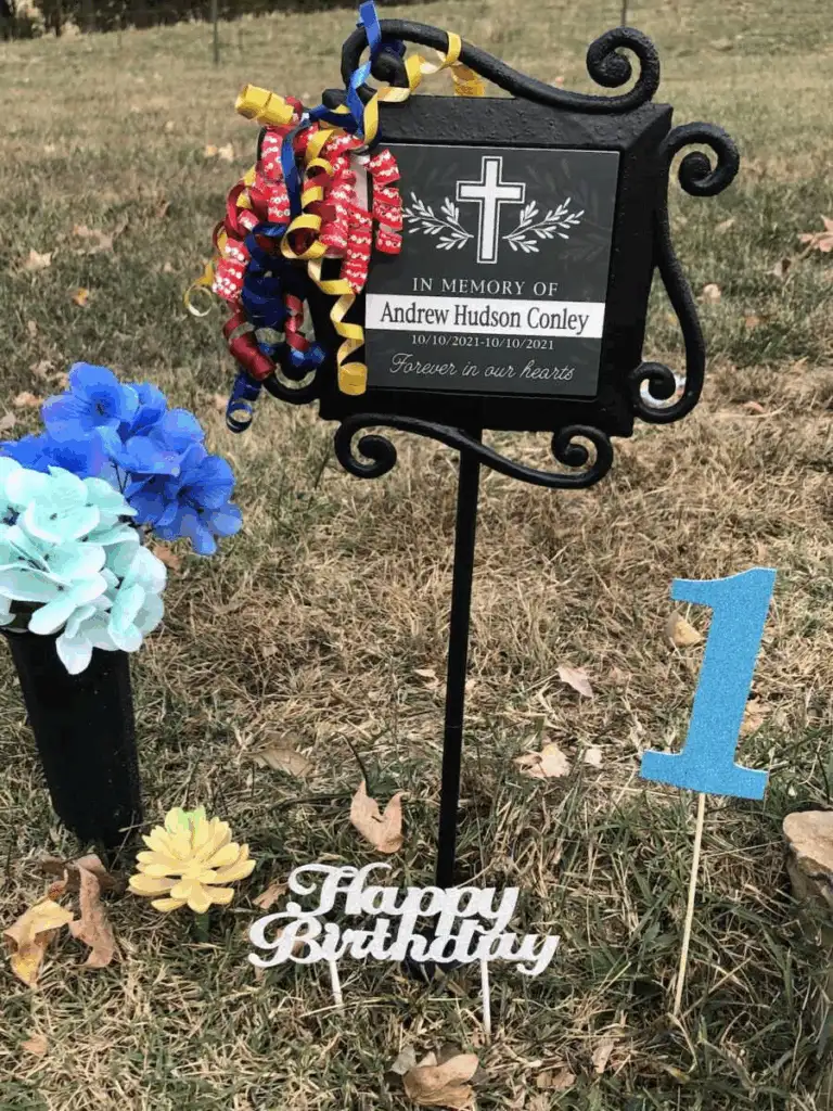 Leading up to Drew’s first birthday, the anniversary of his death, I felt nervous and overwhelmed. I wanted to honor him. We decided to start a tradition: decorating his grave, eating cupcakes, and wearing blue, a color that reminds me of him.
