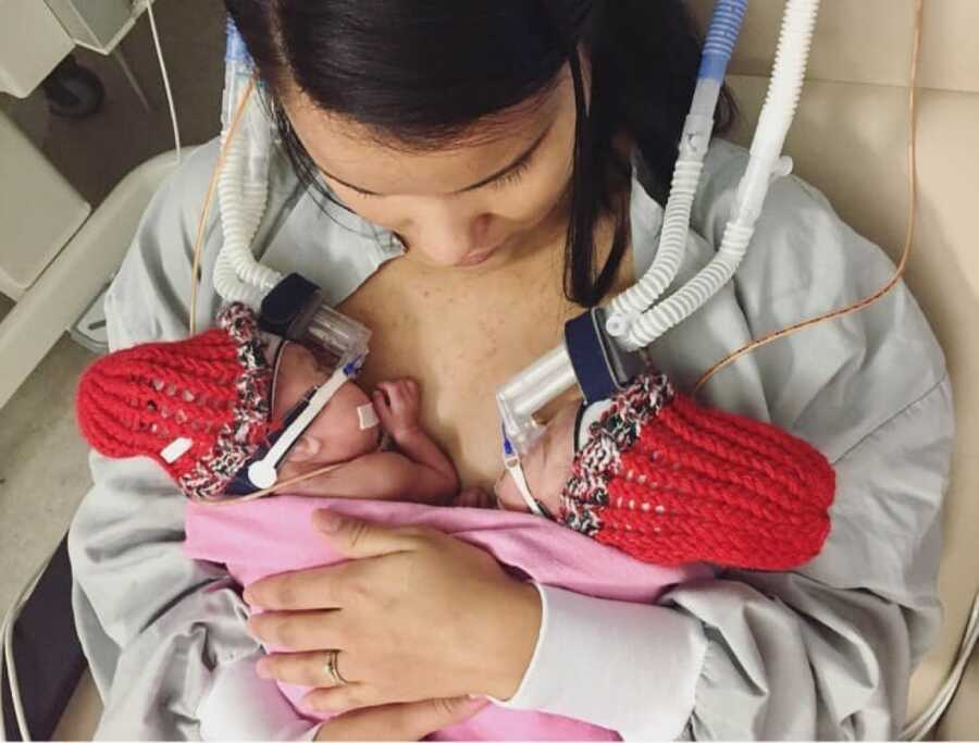 Then, on September 27, labor began again. I was 22 weeks and 2 days pregnant. I felt utterly defeated, ready to face the unthinkable. As they wheeled me to the delivery room, my sister arrived and held my hand. Then, a new doctor entered and said, “Kayla, I know you want these babies saved. I’m going to call every hospital nearby with a NICU and see who will take you.” For the first time in four days, I felt hope.