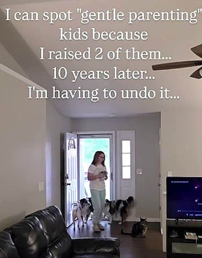 “I can spot ‘gentle parenting’ kids because I raised two of them, and now, ten years later, I’m having to undo it,” she confessed.