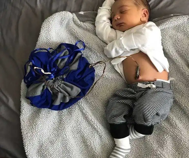 When Ashton finally arrived, his umbilical cord was left uncut at his parents’ request. The process of it detaching itself was satisfying for the parents. It dried out in a few days and became brittle. On the fifth day, it snapped. Only a little piece was now attached and fell on its own in a few days.