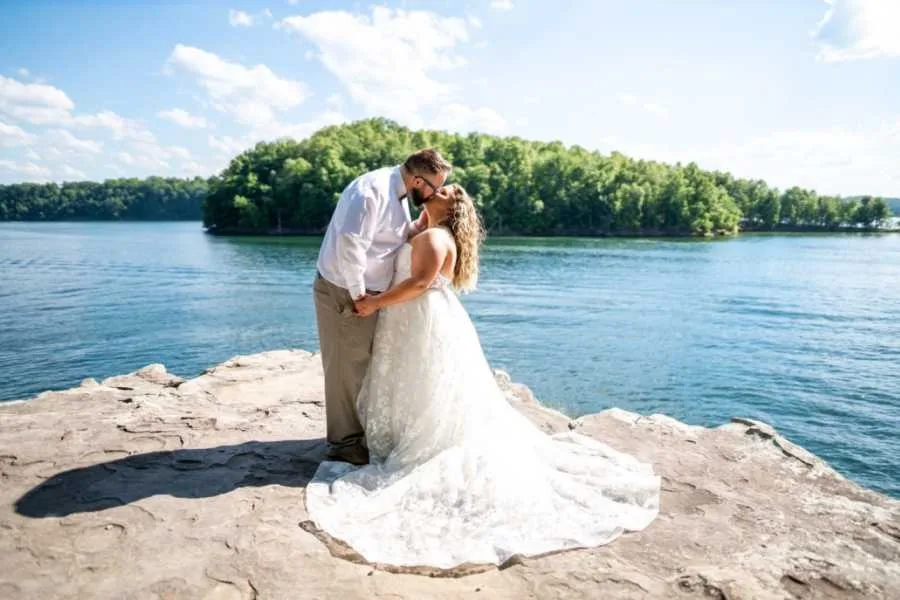 That summer, we finally had “Wedding Part 2” our vow renewal. It was smaller than originally planned but still magical. We said our vows overlooking Summersville Lake, surrounded by family, friends, and even a few curious boaters.