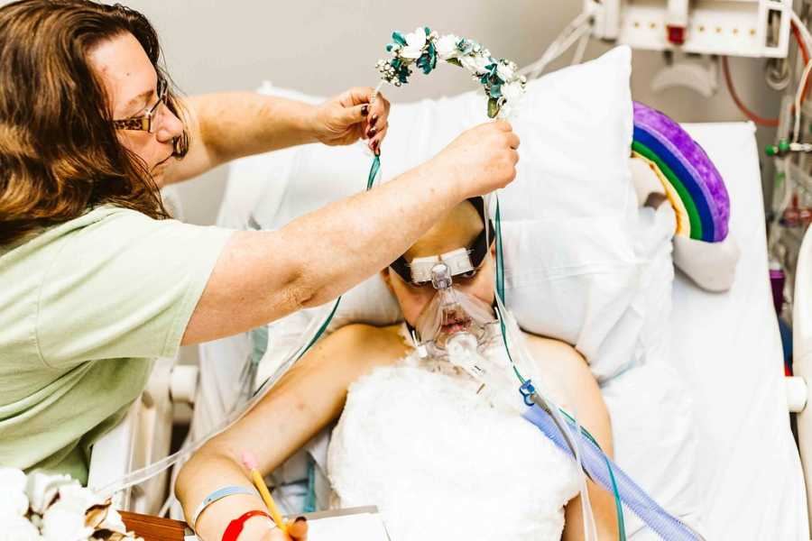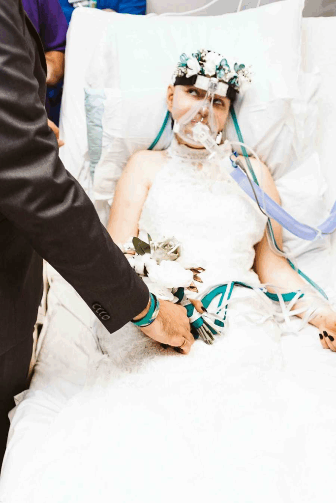 The pale but glowing bride lay in her hospital bed wearing her white dress and a small flower crown. Her hands were weak, but they still reached for the people she loved. The groom stood by her side, nervous and trembling, not because of the wedding itself but because of what it meant. They had met as kids at camp, grown up together, fallen in love, and built a future that now felt painfully short. The wedding wasn’t about flowers or music but about keeping a promise. It was a celebration of life, even as that life slipped away.