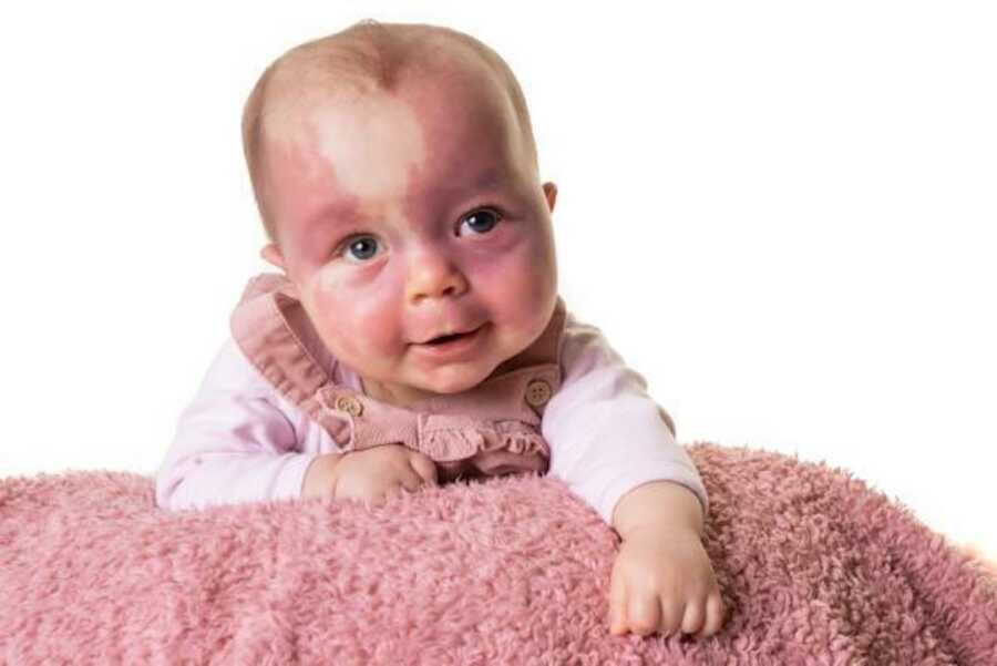 The moment she was born, the doctors placed her in an examination crib. She weighed only 4 pounds 7 ounces, tiny, delicate, and almost too fragile to touch. Her little face came out purple, and at first the doctors weren’t sure if it was just from the birth itself or if it was something permanent, like a birthmark. They told us time would reveal the truth.