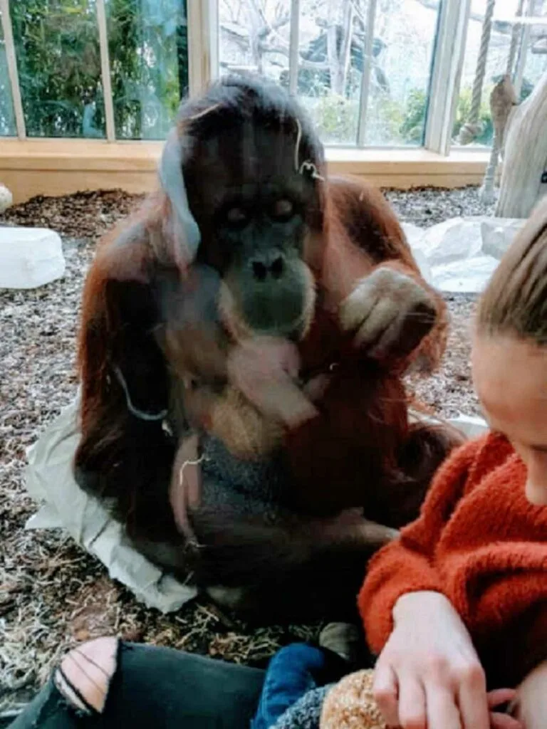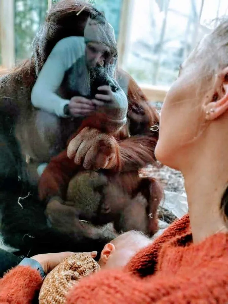 A few minutes later, my son let me know he was hungry. Since it was calm and quiet, I started to breastfeed him. What happened next was unbelievable. The orangutan watched closely. She looked at me, then at my baby, then back again. She stayed by the glass for around 30 minutes, gently stroking it and lying down next to us. It felt like she was comforting and protecting me.