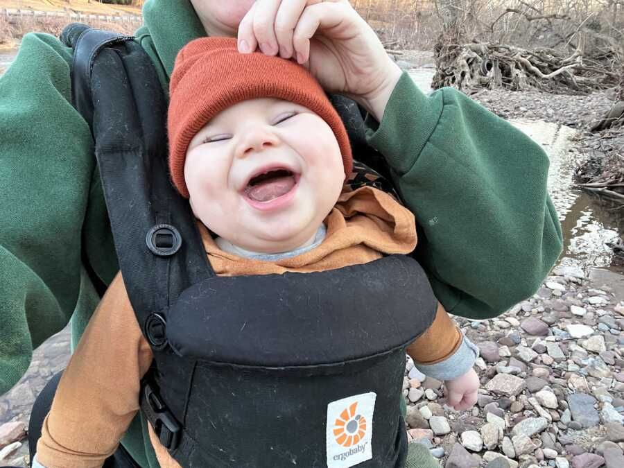 Genetic testing returned an answer. Ben has a TUBA1A mutation, one of only two hundred documented cases. He also has CVI, a visual impairment. He is developmentally delayed, but far more capable than those first awful predictions suggested. He sits alone, eats solids, and lets everyone know what he wants in his own way. He lights up a room with his laugh.