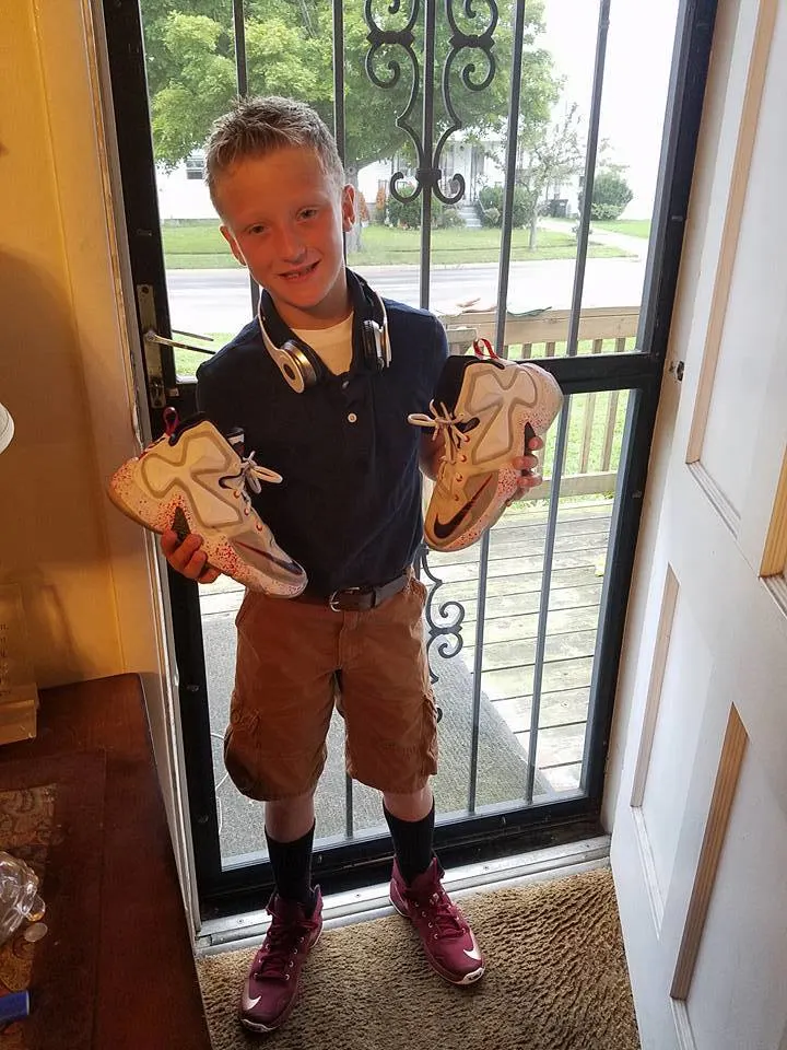 When Jaymes walked into the kitchen that morning, he held his favorite sneakers—his LeBron 13s—loosely in his hands. They were the kind of shoes he usually kept spotless, tucked neatly on the top shelf of his closet, a prized possession for a kid his age. So when he cleared his throat, eyes nervous but determined, his mom knew something important was coming.